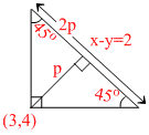 Two lines are drawn through (3, 4), each of which makes angle of 45o with the line x - y = 2, Then area of the triangle formed by these lines is :-