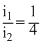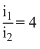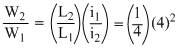 Two different coils have self-inductance L1 = 8 mH and L2 = 2 mH. The current in one coil is increased at a comsatnt rate. The current in the second coil is also increased at the same constant rate. At a certain instant of time, the power given to the two coils is the same. At that that time, the current, the induced voltage and the energy stored in the first coil are i1, V1 and W1 respectively. Corresponding values for the second coil at the same instant are i2, V2 and W2 respectively. Then