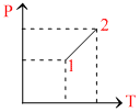 A pressure P-absolute temperature T diagram was obtained when a given mass of gas was heated. During the heating process from the state 1 to state 2 the volume :-