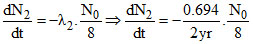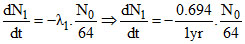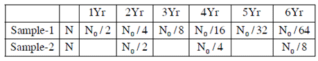 The initial active nuclei of two radioactive substances are same and their half lives are 1 year and 2 year respectively. The ratio of their activities after 6 years will be
