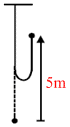 A block of mass 2 kg is suspended from astring, is released from a height of 5m as shown in figure then what will be the impulse when string. Just becomes tight :-