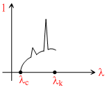 The intensity of X-rays from collidge tube is plotted against wavelength λ as shown in the figure. The minimum wavelength found is λc and the wavelength of the Kα line is λk. As the accelerating voltage increased