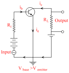 This has been shown an n-p-n transistor. Therefore, base emitter are forward biased and input signal is connected between base and emitter.