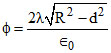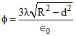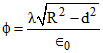 A infinitely long line charge having a uniform charge per unit length λ lies a distance d from point O. Determine the total electric flux through the surface of a sphere of radius R (R > d) :-