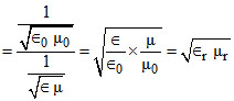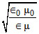 If ∈0 and μ0 are the electric permittivity and magnetic permeability in free space, ∈ and μ are corresponding quantities in medium, the index of refraction of the medium is :-