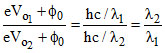 Light of wavelength 0.6 μm from a sodium lamp falls on a photocell and causes the emission of photoelectrons for which the stopping potential is 0.5 V, with light of wavelength 0.4 μm from a mercury vapour lamp, the stopping potential is 1.5 V, then the work function in electron volts, of the photocell surface is :
