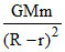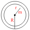 A mass m is placed in the cavity inside a hollow sphere of mass M as shown in the figure. What is the gravitational force on the mass m :-