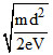 An electron having charge e and mass m starts from lower plate of two metallic plates separated by a distance d. If potential difference between the plates is V, the time taken by the electron to reach the upper plate is given by :