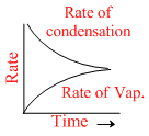 Which of the following plots in correctly representing the variation in rate of vaporation and rate of condensation with time ? (for a liquid in a closed container)