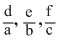 If a, b, c are in GP, then the equations ax2 + 2bx + c = 0 and dx2 + 2bx + f = 0 have a common root, if,