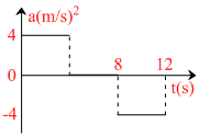 A lift starts moving upwards from rest. Its acceleration is plotted against time in the following graph. When it comes to rest its height above its starting point is:-