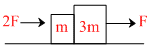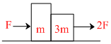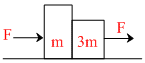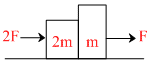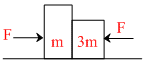 In all the given cases blocks are in contact and the forces are applied as shown. All the surfaces are smooth. Then in which of the following cases, normal reaction (contact force) between the two blocks is zero :-