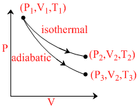 The reversible expansion of an ideal gas under adiabatic and isothermal conditions is shown in the figure. Which of the following statement(s) is (are) not correct ?