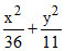 The equation of the ellipse whose foci are (± 5, 0) and one of its directrix is 5x = 36, is -