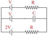 In steady state current through resistors = V/3R