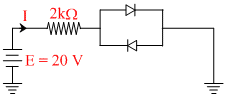 Assuming the diodes to be silicon with forward resistance zero, the current-I is the following circuit is :-