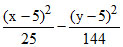 The vertices of a hyperbola are at (0, 0) and (10, 0) and one of its foci is at (18, 0). The equation of the hyperbola is -