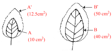 In above diagrams, A and B are initial areas of leaves. A′ and B′ are areas of leaves after growth. Which of the following is correct ?