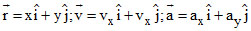 A particle moves in XY plane such that its position, velocity and acceleration are given by