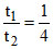 Let C be the capacitance of a capacitor discharging through a resistor R. Suppose t1 is the time taken for the energy stored in the capacitor to reduce to half its initial value and t2 is the time taken for the charge to reduce to one-fourth its initial value. Then the ratio t1/t2 will be :