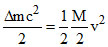 A nucleus of mass M + ᐃm at rest splitts into two different nuclei each of mass M/2. If speed