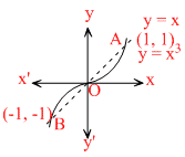 Note y = x3 is odd order parabola and y = x is always intersect at (1, 1) and (-1, -1)