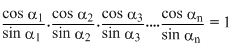 and (cot α1).(cotα2)....(cotαn) = 1 is