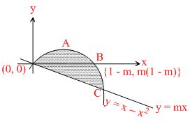 In this case, y = mx and y = x - x2 intersect in (0, 0) and