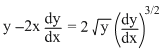 The differential equation represrnting the family of curves y2 = 2c(x + √c ) where c is a positive parameter, is of