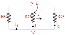 A rectangular loop has a sliding connector PQ of length l and resistance RΩ and it is moving with a speed v as shown. The set up is placed in a uniform magnetic field B going into the plane of the paper. The three currents I1, I2 and I are :-