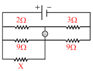 In the following circuit, the galvanometer gives zero deflection. The value of resistance X will be-