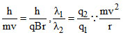 An α-particle and a proton are tired through the same magnetic fields which is perpendicular to their velocities . The α particle and the proton move such that radius of curvature of their path is same ratio of their de Broglie wavelength is :-