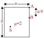 Figure shows a transparent block of front sides ′a′ and ′a′. The third dimension of the block is negligible. A point source S which can emit light in all directions can move inside the block. It is desired that no light of ′S′ should pass through AB. The region in which S should be present to satisfy this condition shown by shaded region. Choose correct option.