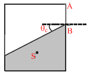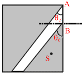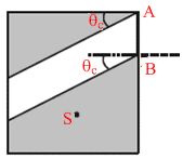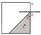 If s is anywhere in the shaded region, the light rays from S will strike AB making an angle more than critical angle.
