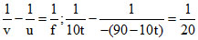 Let this happens after a time t. At this time u = - (90 - 10t) ; v = 10 t