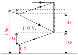 A boy of height 1.5 m with his eye level at 1.4 m stands before a plane mirror of length 0.75 m fixed on the wall. The height of the lower edge of the mirror above the floor is 0.8 m. Then :