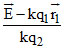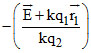 There are two point charges q1 and q2 lying on a circle of unit radius. Electric field intensity at the center of circle due to these charges is