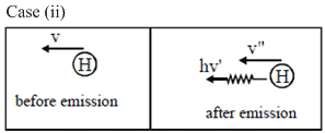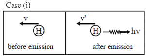 Two hydrogen atoms are in excited state with electrons residing in n = 2. First one is moving towards left and emits a photon of energy E1 towards right. Second one is moving towards left with same speed and emits a photon of energy E2 towards left. Taking recoil of nucleus into account during emission process