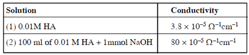 Given : λm∞(H+) = 350Ω-1 cm2mol-1 ; λm∞(A-) = 30Ω-1cm2mol-1