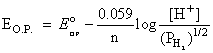 A hydrogen gas electrode is made by dipping platinum wire in a solution of HCl of pH = 10 and by passing hydrogen gas around the platinum wire at one atm pressure. The oxidation potential of electrode would be ?