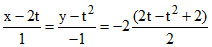 ⇒ x = t2 - 2 and y = 2(t + 1)