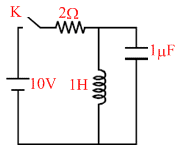 For the circuit shown, the switch ′K′ was closed for a long time till steady state condition reached. At time t = 0, the switch K is opened, then the current through inductor as a function of time will be