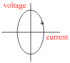 The graph shows current v/s voltage in a series RLC A.C. circuit. The arrow indicates the direction that this curve is drawn as time progresses. In this plot, the