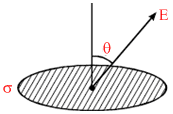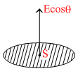 The electric field ′E′ is uniform in the shaded area and makes an angle θ with the normal. The conductivity of the material in which the area ′S′ lies is σ. The electric current flowing out of the shaded area is