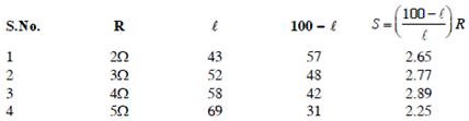 A student obtained following observations in an experiment of meter bridge to find unknown resistance of given wire :