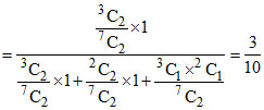 A bag contains 3 red, 2 green and 2 white balls. Two balls are drawn at random and none of them is found to be a green ball, then the chance that both are red is equal to -