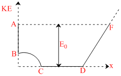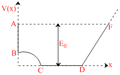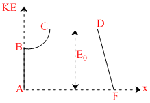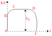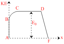 A graph of potential energy V ( x ) verses x is shown in figure. A particle of energy E0 is executing motion in it. Which of the following graph denotes the variation of kinetic energy with x?