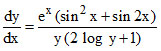 A.y2 (log y) − ex sin2 x + c = 0