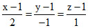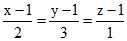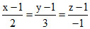 Equations of the line through (1,1,1) and perpendicular to the plane 2x + 3y − z − 5=0 are-