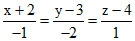 The equation of a line through (−2, 3, 4) and parallel to the planes 2x + 3y + 4z = 5 and 3x + 4y + 5z = 6 are